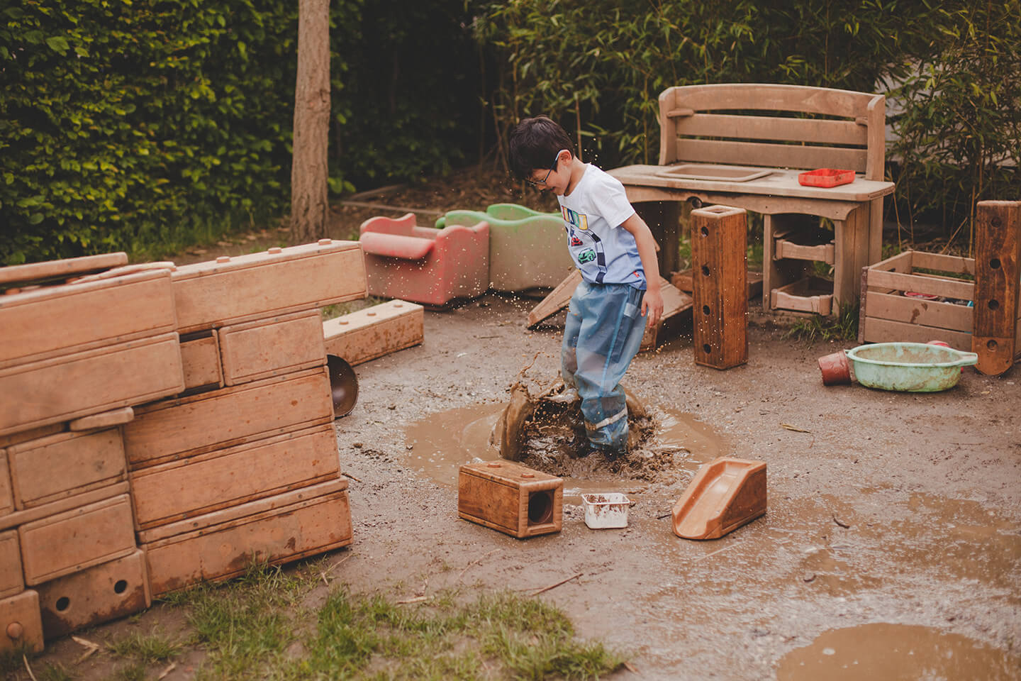 Unsere Räume sind hell, offen und anregend gestaltet. Sie bieten Rückzugsmöglichkeiten ebenso wie Bewegungsflächen und kreative Spielbereiche. Der großzügige Außenbereich ist mit hochwertigem Material ausgestattet und lädt zu Entdeckungen ein. Hier entsteht Raum für Fantasie, Bewegung und Naturerfahrung.